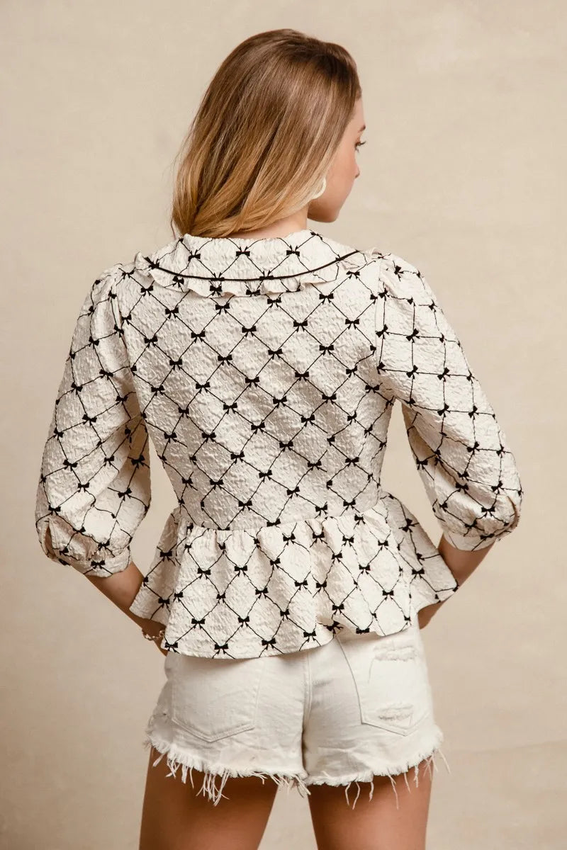 BiBi Bow Prints-patterns Ruffle Collar Details Peplum Top