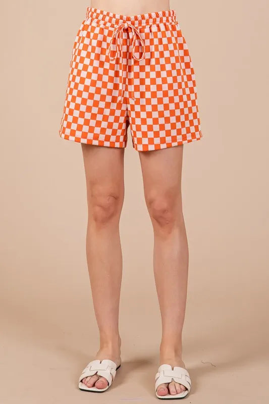 Ces Femme Checkered Round Neck Top and Shorts Set